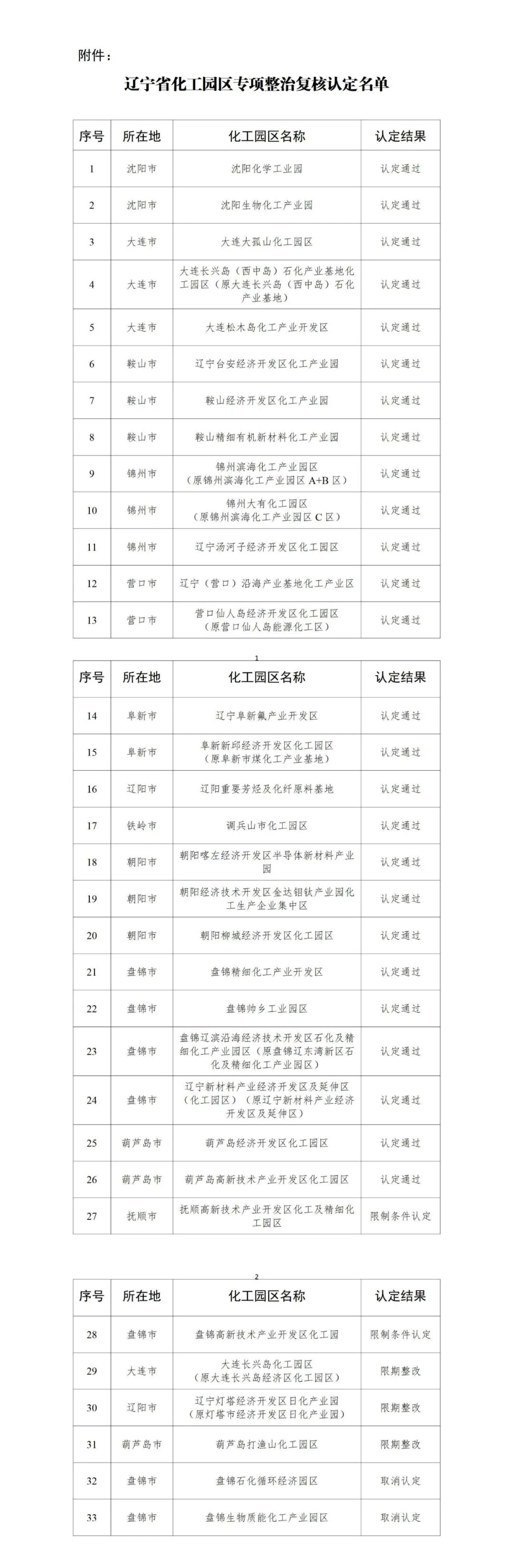 附件:遼寧省化工園區(qū)專項整治復(fù)核認(rèn)定名單